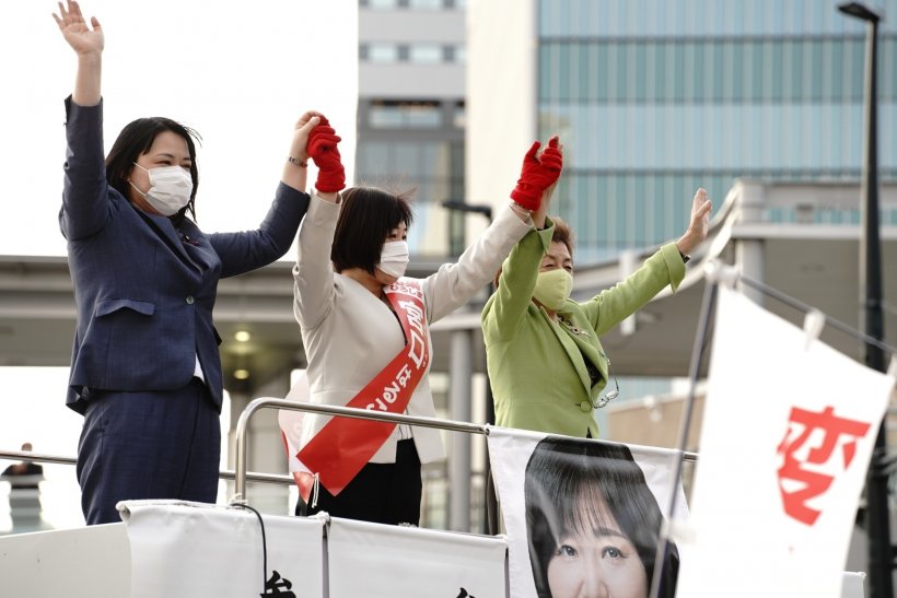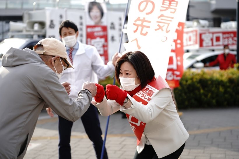 広島駅北口での街頭演説会、嘉田由紀子参議院議員、岸まき子参議院議員と。 司会の私は下から御三方の演説を聞いていましたが、 この三人が一つになれば、3馬力どころか100馬力にも1000馬力にもなると確信しました。 三本の矢の三本目に宮口はるこは絶対に必要です。