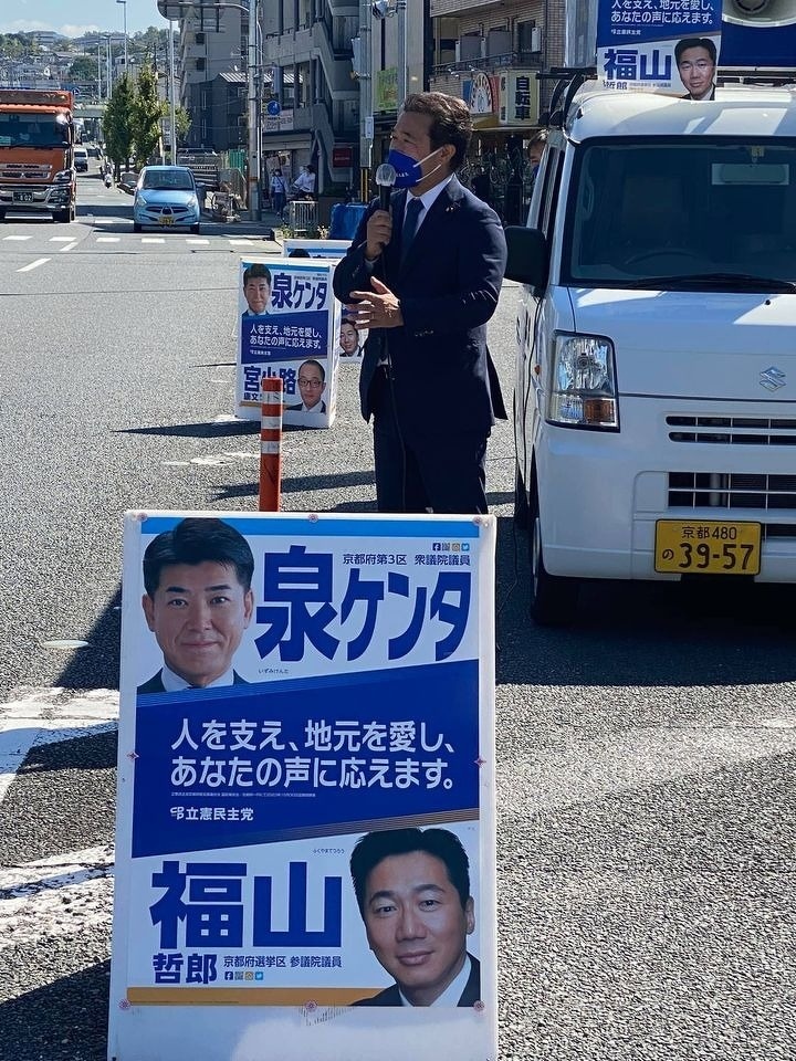 泉ケンタ政調会長の地元、京都3区で活動。 自分の原点も再確認しながら遊説しました。 翌日は広島4区上野かんじさんの応援。 東広島の遊説、夕方17時からは、 横川駅前2区大井赤亥さんの街頭演説会の応援です。