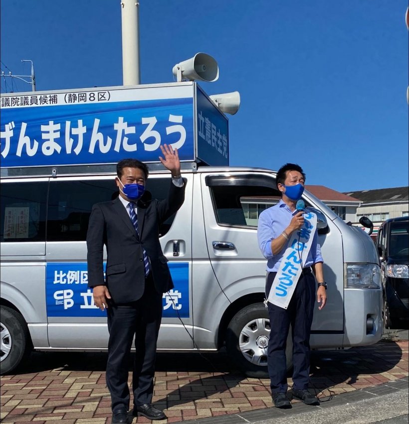 静岡8区源馬謙太郎候補、午後から愛知13区大西健介候補の応援。 両名とも党内の勉強会で共に活動する仲間です。 ともに横一線の大激戦!何とか勝ち上がっていただかなければなりません。 私も訴えに力が入りました。