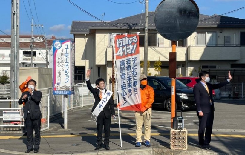 東広島市議補選に挑戦予定の「落海なおや」さん 瀧本実県議と応援で街頭演説 6歳と2歳、二児の父親。 通信設備会社の社員で、デジタル先端都市東広島を目指し、教育環境、医療福祉分野の整備に努めます!