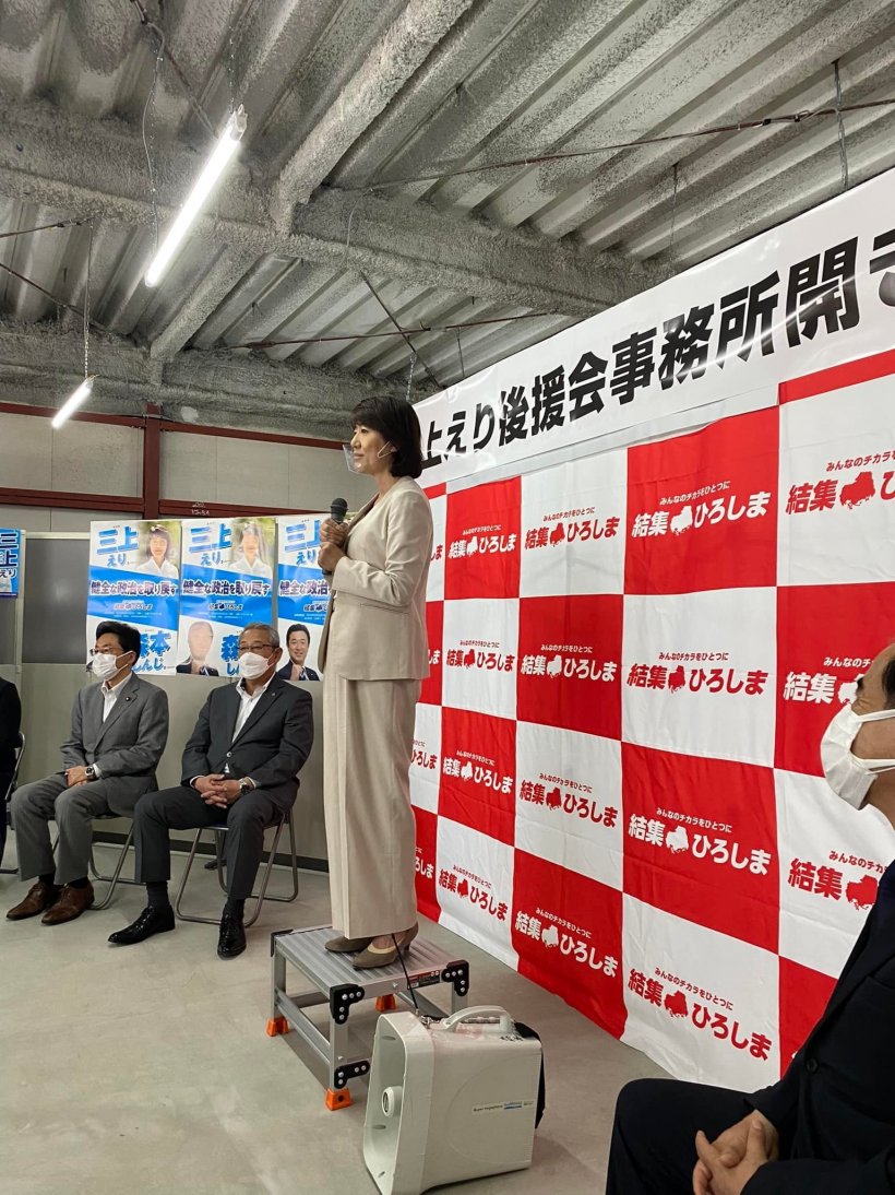 今日は三上えりさんの後援会事務所開き。 関係者の皆さんにお支えいただき、本番に向けて準備が進みます。 私は選対本部で佐藤こうじ本部長の下、事務総長を務めます。 明日は福山、三次でも事務所開きです。