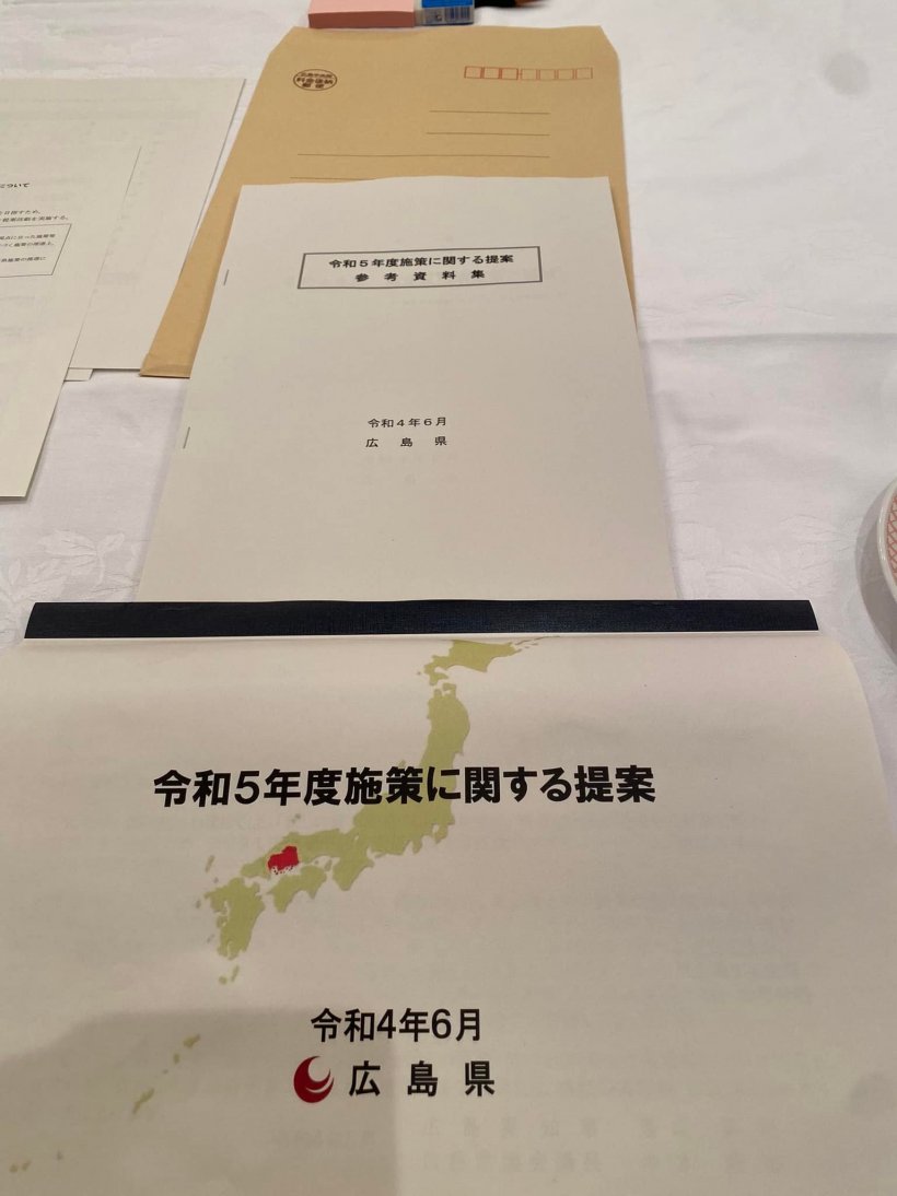 今朝は広島県の令和5年度施策に関する提案を、湯崎知事から受けています。
