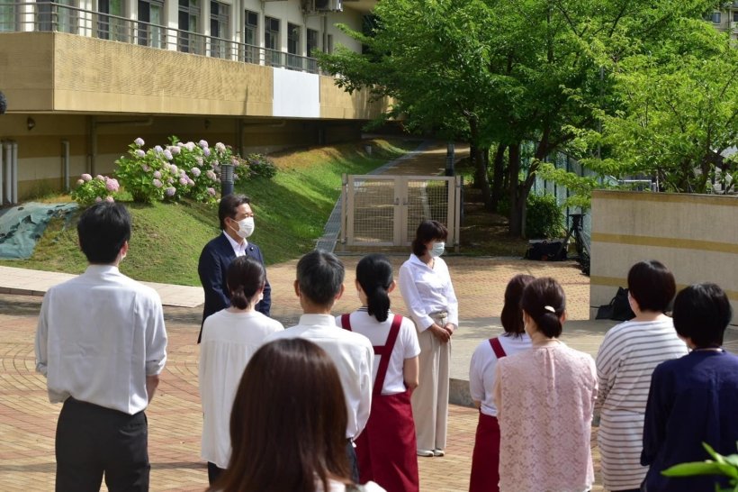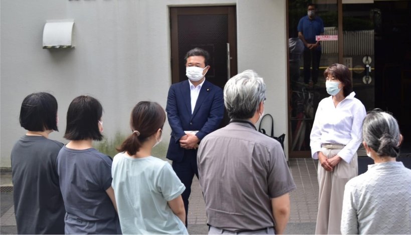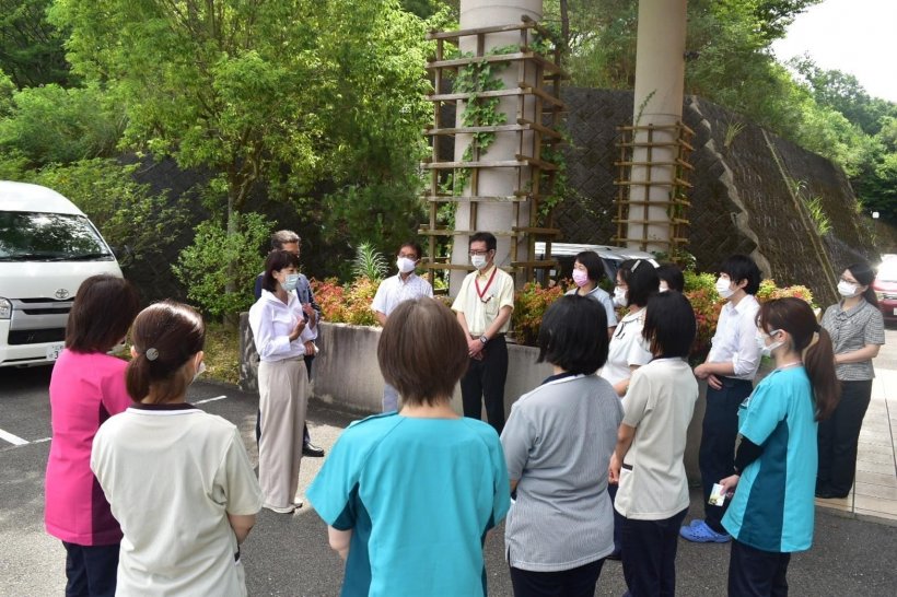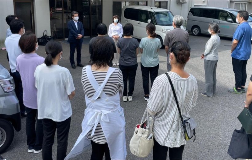 選挙戦7日目。午前中は三上えり候補と、介護現場で働く皆さんにご挨拶。