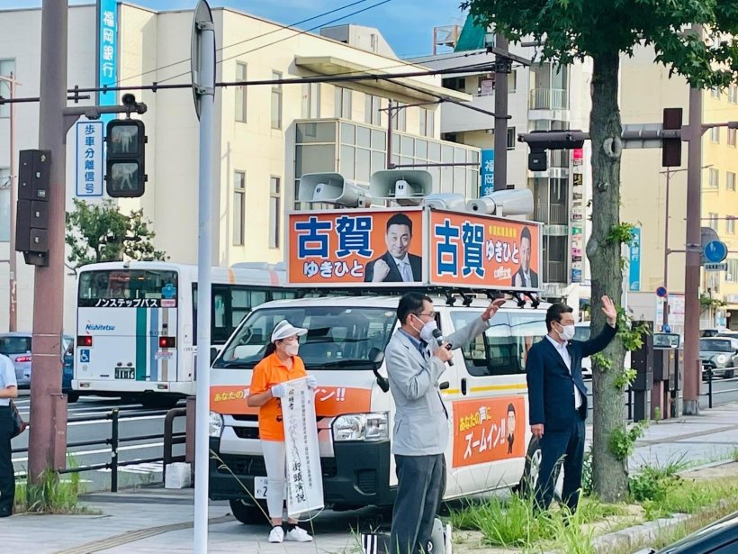 夕方、北九州市に向かい、福岡県選挙区「古賀ゆきひと」候補の応援。 6年間一緒に国会で仕事をしました。行政監視、決算、財政金融委員会を中心に活躍され、税金の使い方を厳しく見極める議員です。 野田くによし参議院議員、城井たかし衆議院議員と街頭演説を行いました。他県で現職議員の応援に伺うと様々勉強になります。広島の選挙にも参考にします。