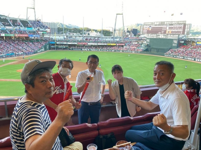 私が二年間ご指導いただいた難波奨ニ前国対委員長をマツダスタジアムにご招待。難波先生も大のカープファン!国対で一緒に汗を流した斎藤現国対委員長、野田参議院議員も駆けつけていただき、地元の宮口議員もご一緒してくださいました。今日は愛知選出の斎藤議員が喜ぶ結果でしたから、途中で球場を出、今後の国会対策会議を広島で開催しました!