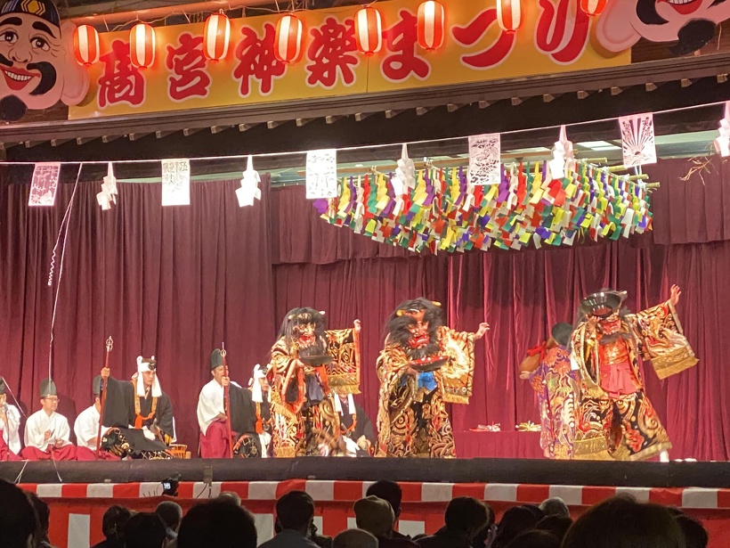 三年ぶりに開催された「第50回高宮神楽まつり」安芸高田市におじゃましています。 実行委員会、出演される神楽団のみなさんにお祝いのご挨拶。 神楽ファンも待ちに待った開催です。伺うと千葉県から来られた方もいるとか。