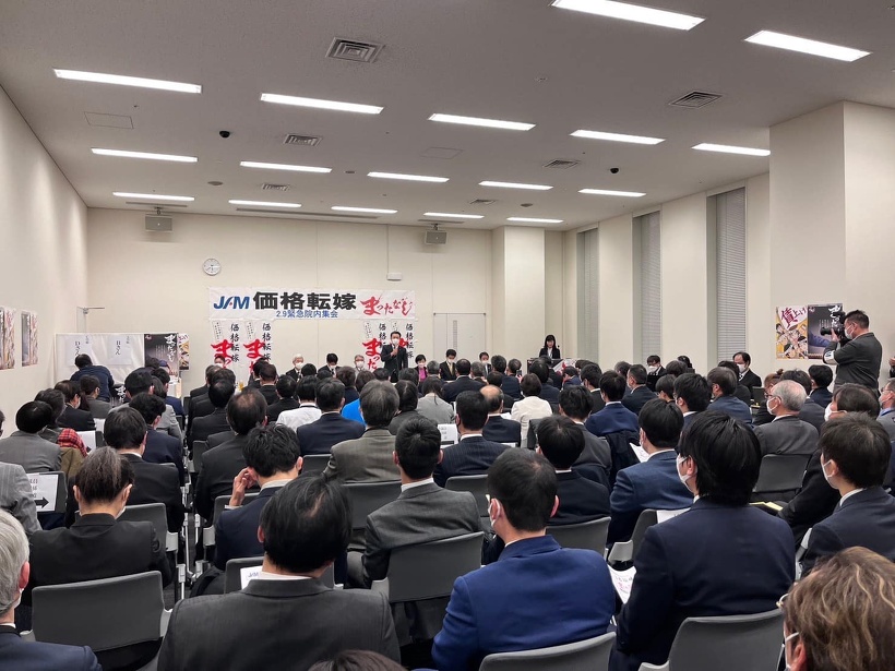 中小ものづくり産業の産別組合のJAMが「価格転嫁待ったなし総行動院内集会」を開催。 国会議員も約60名参加していただきました。 JAMものづくり議員懇談会の泉健太代表が出席できず、幹事長として皆さんにご挨拶させていただきました。 賃上げ実現のためにも、大企業と中小企業との公正取引、価格転嫁を進めることが不可欠です。 政治も後押しをしなければなりません。