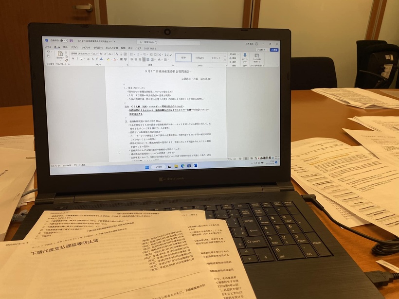 連日、参議院予算委員会での審議が行われ、私は国対にこもって状況を見守る日々です。明日は所管毎に予算の委嘱審査が各常任委員会で行われます。 私も経済産業委員会で10:45〜11:35の予定で質問に立ちます。 1,賃上げ 2,価格転嫁促進の取り組み 3,雇用の流動化と定着率の整合性について 通告をしました。