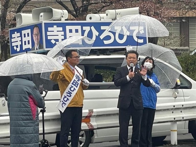 島根県議選雲南・飯石選挙区、寺田ひろひで候補の応援。 石橋通宏参議院議員の元秘書で、2019年私の選挙の際、泊まり込みで応援に入ってくださいました。定数2で自民党2名の候補と三つ巴。私の選挙も、序盤自民独占の予想から最後はトップ当選できたこと。寺田さんに再現してもらいたいと訴えました。