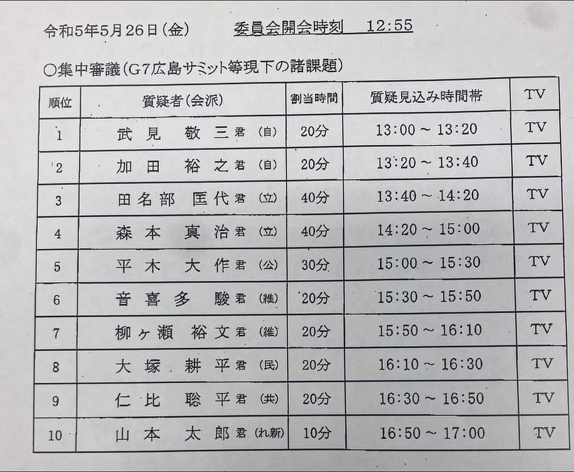 明日の予算委員会。14:20から久しぶりに質問に立ちます。NHK、ラジオ中継が有りますのでぜひご覧ください! 1、G7広島サミット 2、賃上げと税や保険料負担の関係 3、リスキリングと労働市場の流動化 4、児童虐待防止 5、入管法 について通告。40分のため短いですがが、岸田総理に思いをぶつけます。