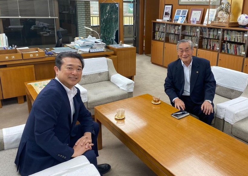 大竹市役所におじゃまし、入山市長と懇談。 高校の大先輩でもあり、いつもご指導をいただいています。 来月、タウンミィーティングを開催する予定で、市長からも市政報告をしていただくことを快諾していただきました。