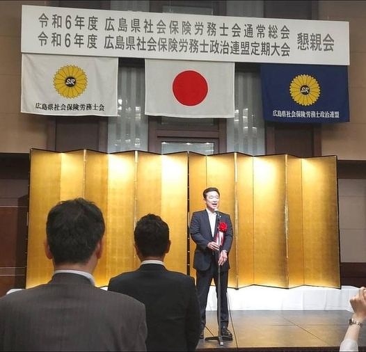 午前中の本会議を終え、広島に戻りました。 夕方には広島県社会保険労務士会の総会懇親会にお招きいただきご挨拶。 人的資本経営、人を大切にする経済が言われる中、労務管理のプロである社労士の皆さんの力を借りて、働く者の視点に立った政治を進めていきたいとお話しました。
