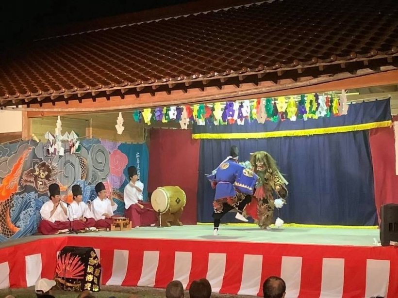 ホールでの競演大会とは違い、アドリブがたくさん入り、何時に終わるのかわからないのも、地祭りでの神楽観賞の楽しみです。 馴染みの方も増え、私の再選もお祝いしてくださいました。