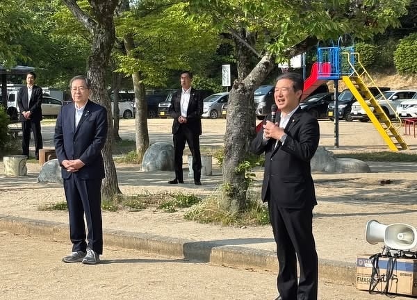今日は広島県内大移動です。 朝は地元安佐北区で、顧問を務めるソフトボール大会でご挨拶と始球式。 呉に移動し国政報告。安芸高田市甲田町の大土山田楽花田植。 福山に移動してのJFEスチール福山労組60周年レセプション。 一人でも多くの皆さんにお会いしたいと走りまわります。