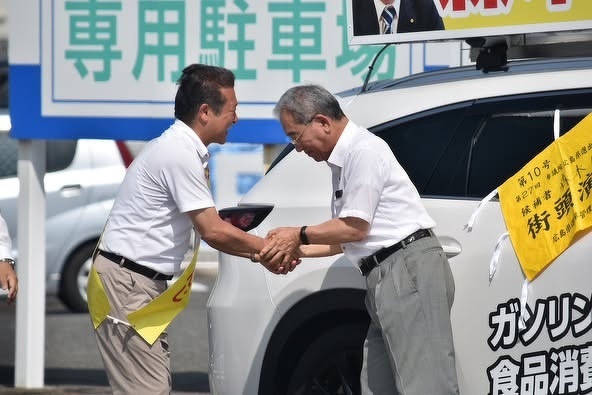 昨日は西日本豪雨災害から7年。 被害の大きかった安芸区矢野、東広島市黒瀬などをまわり、防災、減災対策は政治の使命だと再確認しました。 多くの皆さんからご意見をいただきました。高垣広徳東広島市長、西本博之県議、上野寛治県議、三上えり参議院議員から力強い応援。 また党本部から重徳和彦政調会長にも来広いただきました。 #参院選2025 #食料品消費税ゼロ #ガソリン税25円値下げ #元気もりもり