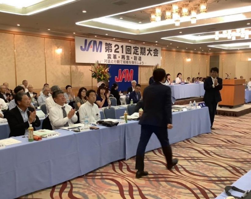 岐阜市で開かれていた、中小ものづくり産業で働く皆さんが集う「JAM」の全国大会でご挨拶。