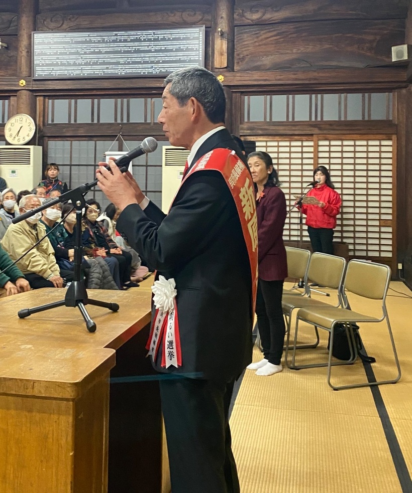 3期目を目指す、「新原よしあけ」候補を応援しています。大激選と言われており、居ても立っても居られず、夕方の個人演説会で私からもお願いをさせていただきました。8年間、新原市長とは懇意にさせていただき、引き続き連携をさせていただきたい方です。