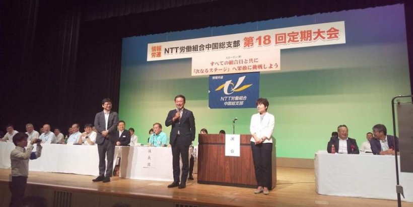 南区でNTT労組中国総支部定期大会が開催されています。 組織内の石橋通宏参議院議員、吉川さおり参議院議員も来広され、一緒にご挨拶。国会でも一番親しくさせていただいており、頼らせてもいただいたお二方です。