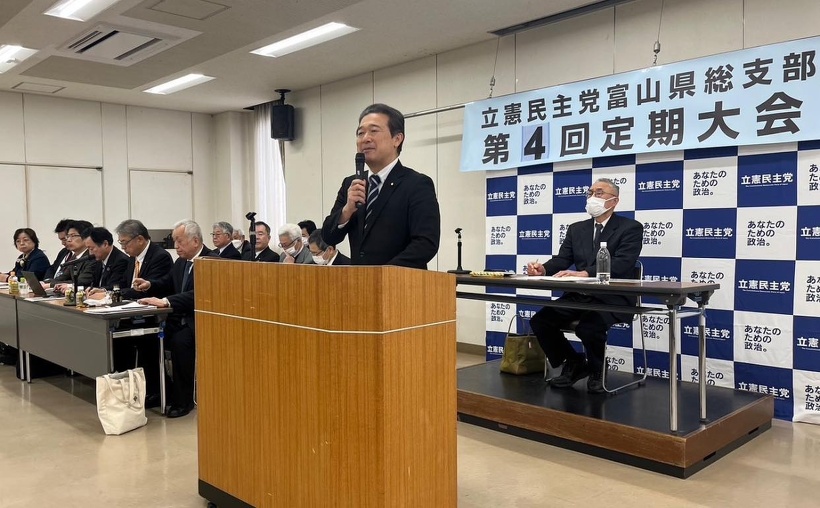 朝東京から富山に向かい、富山県連定期大会に党本部を代表して出席しました。 富山県は国会議員不在県連ですから、組織委員会として力を注いでいます。 衆議院選に向け、1区の山としひろさん、2区の越川康晴さんには活動量のアップをお願いしました。