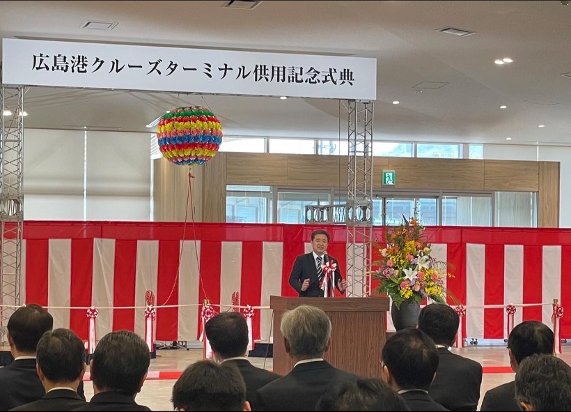 広島港クルーズターミナル共用記念式典 広島の新たな海の玄関口として整備されました。 「広島を訪れるお客さまが広島は素晴らしいと思っていただける街づくりをこれからも行って行きましょう」とご挨拶させていただきました。