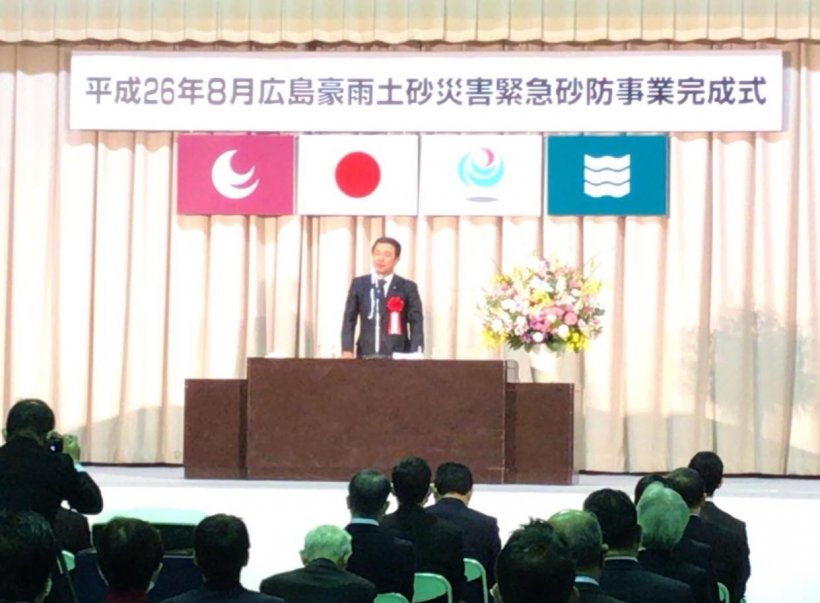 平成26年8月広島豪雨土砂災害緊急砂防事業完成式に出席しました。 あれから6年余りが経ちました。 毎年全国で大規模な被害が発生する状況の中で、 少しでも住民の皆さんの不安が解消されることを願います。
