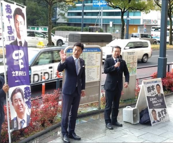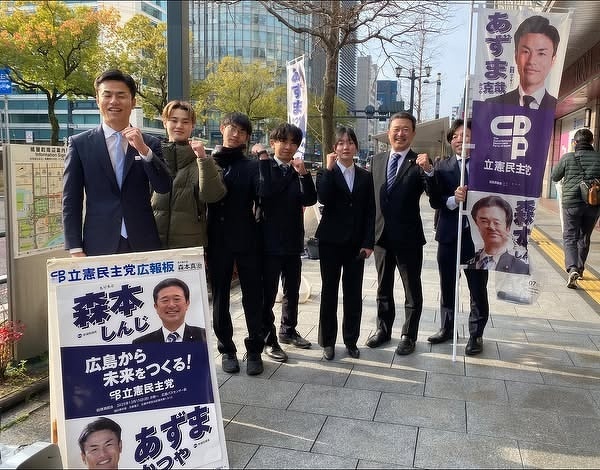今朝は安佐北区も雪がちらつく朝でした。 あずまかつや衆議院議員と合同の街頭での国政報告。 先週の予算委員会での質疑のことなどお話しました。 インターン生にも寒い中参加していただきました。