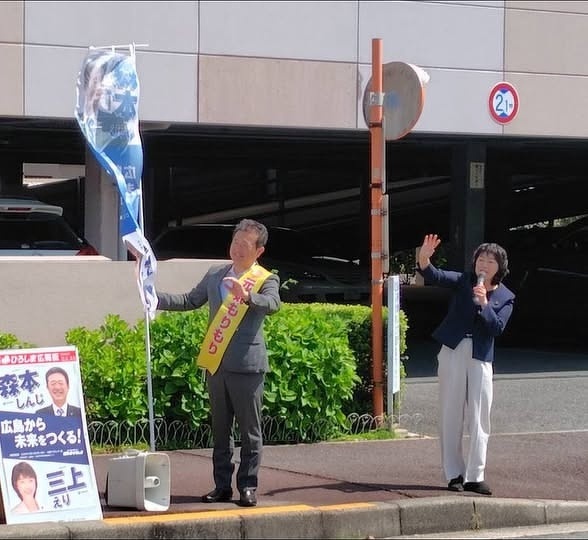 今日は午後から廿日市市内の街頭活動デー。 三上えり参議院議員がご一緒してくれ、国政報告と参院選に向けての決意を述べました。 非常に風の強い日でしたが、予想を超えた声援をいただき、気合いが入りました!
