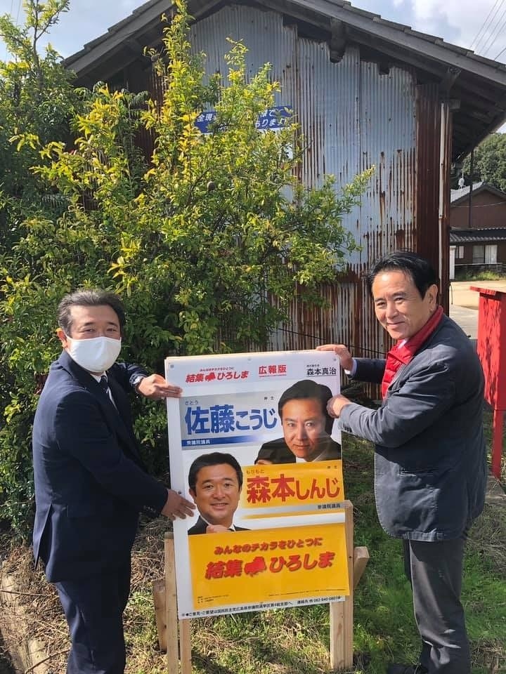 今日は佐藤公治衆議院議員、桑木良典県議と三原市佐木島におじゃましました。 みかん園、養鶏場の視察を始め古民家を再生してのレストラン。
