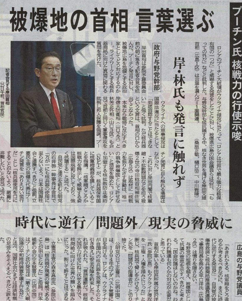 ロシアのウクライナに対する軍事行動は断じて許すわけにはいけません。