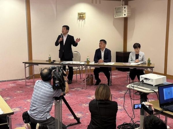 今日は長崎市におじゃまし、「被爆体験者問題解決の為の県民集会」に参加しました。 長崎選出の西岡秀子、山田勝彦両衆議院議員と。 長崎で黒い雨を浴びたにも関わらず、線引きで被爆者に認定されない方は被爆体験者と位置付けられており、広島では認定されることになったのと対照的な状況が続いています。 8月9日の総理が被爆者団体からの要望を聞く会では、初めて被爆体験者の方も参加できるようになり、解決に向け前進していくことが望まれます。